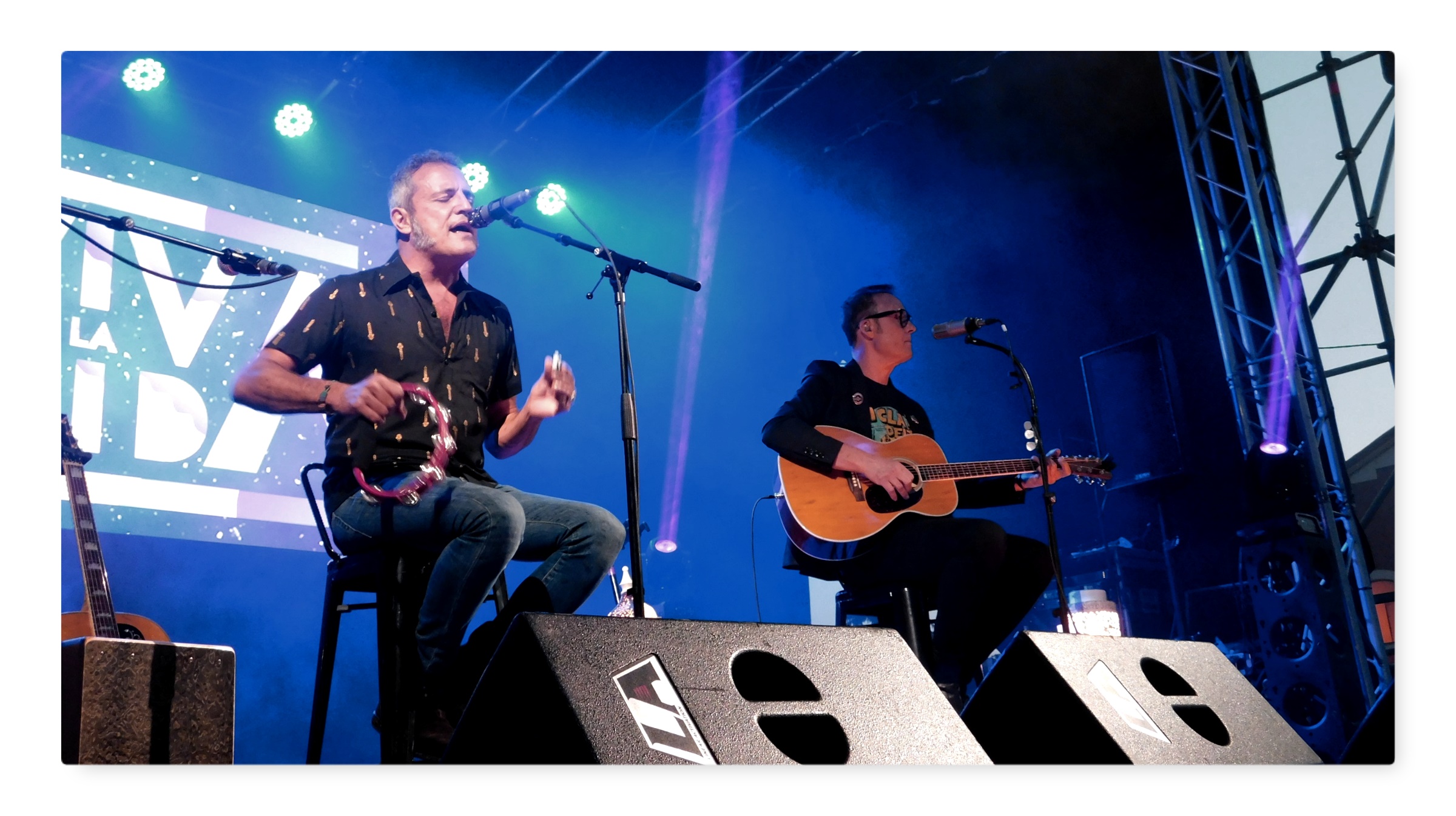 ... Y así nos encontramos en una noche de verano, con la temperatura perfecta para combatir contra un clima a priori aséptico y frío, derivado de las omnipresentes medidas de seguridad sanitaria que, por otro lado, garantizan el buen discurrir de los eventos. Sus aliados: las ganas de música en directo, post-confinamiento del respetable, y unos bregados músicos, de la talla de Carlos Tarque y Ricardo Ruipérez, dúo representante de M Clan para su concierto acústico.